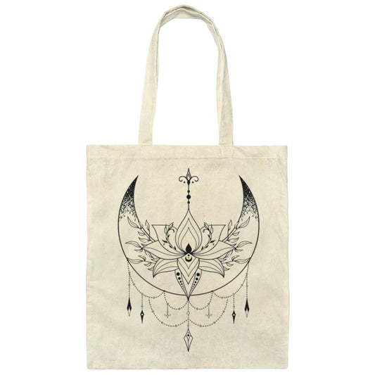 Crescent Moon and Lotus Flower | Canvas Tote Bag