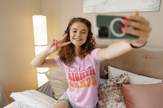 Hello Eighth Grade Retro Pink | Youth and Adult T-Shirts