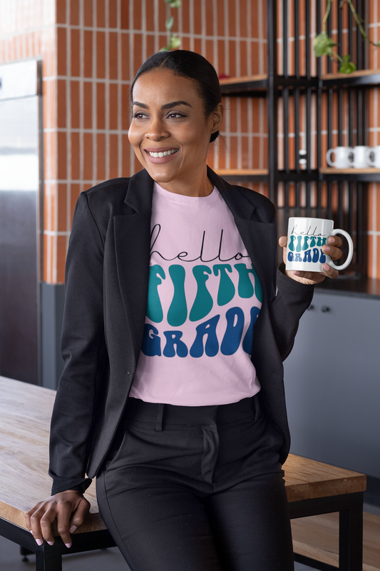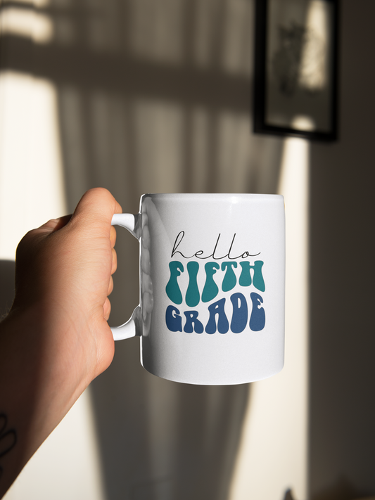 Hello Fifth Grade Retro Blue | 15 oz. White Mug