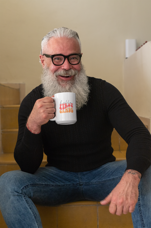 Hello First Grade Retro Blue | 15 oz. White Mug