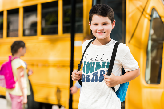 Hello Fourth Grade Retro Blue | Youth and Adult T-Shirts