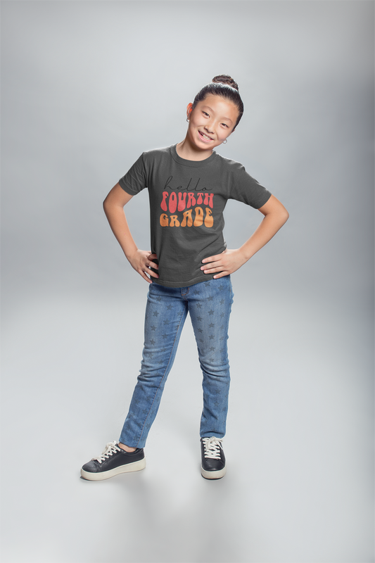 Hello Fourth Grade Retro Pink | Youth and Adult T-Shirts