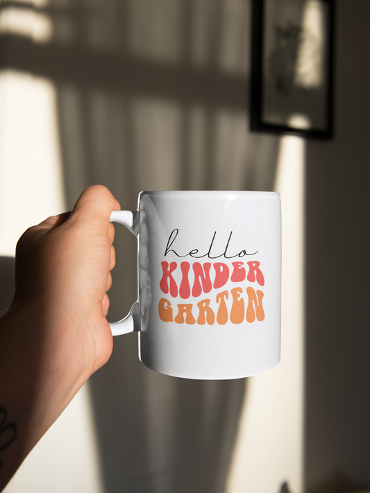 Hello Kindergarten Grade Retro Pink | 15 oz. White Mug