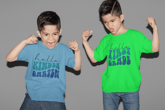 Hello Kindergarten Retro Blue | Youth and Adult T-Shirts