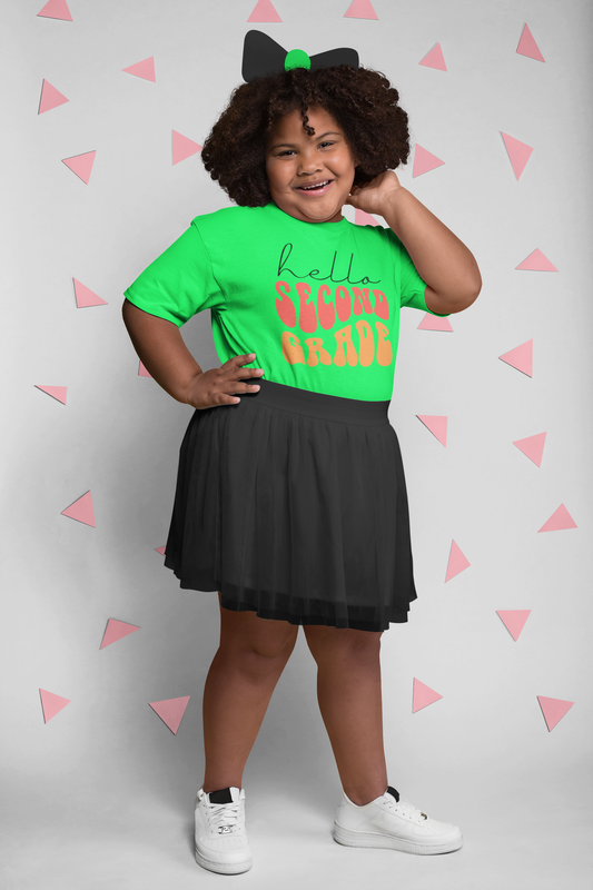 Hello Second Grade Retro Pink | Youth and Adult T-Shirts