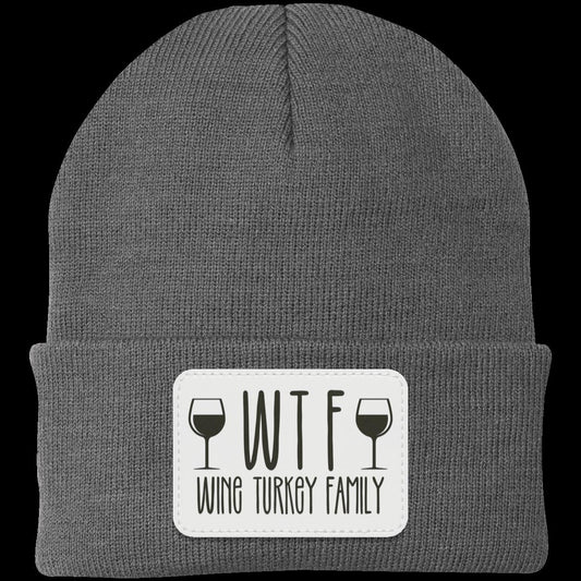 Wine Turkey Family WTF | Knit Beanie with Patch