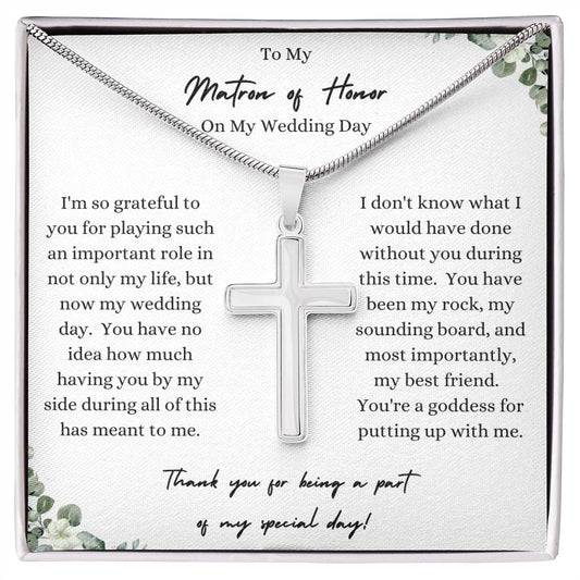 To My Matron Of Honor On My Wedding Day | Stainless Steel Cross Necklace