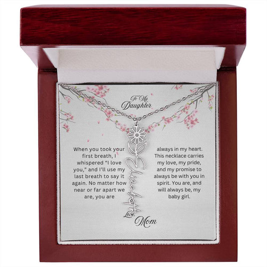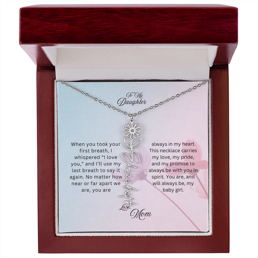 To My Daughter, Love Mom | You Will Always Be My Baby Girl | Birth Flower Name Necklace