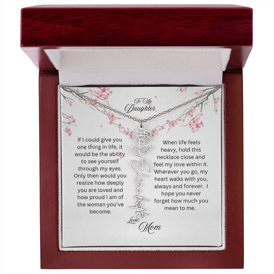 To My Daughter, Love Mom | If You Could See Yourself Through My Eyes | Birth Flower Name Necklace