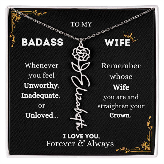 To My Bada$$ Wife | Silver Birth Flower Name Necklace