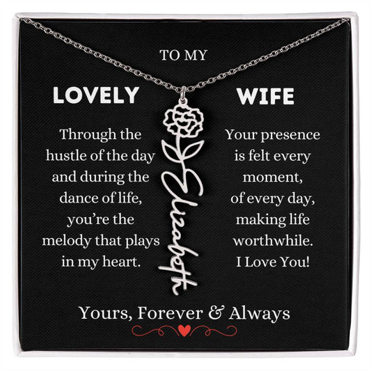 To My Lovely Wife | Silver Birth Flower Name Necklace