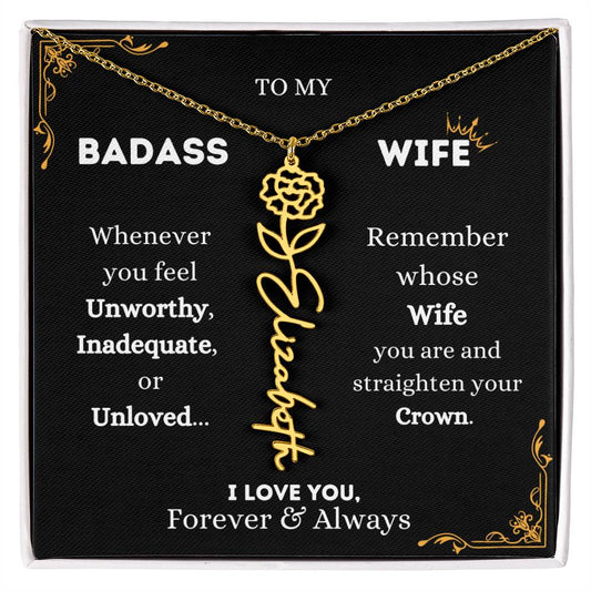 To My Bada$$ Wife | Gold Birth Flower Name Necklace