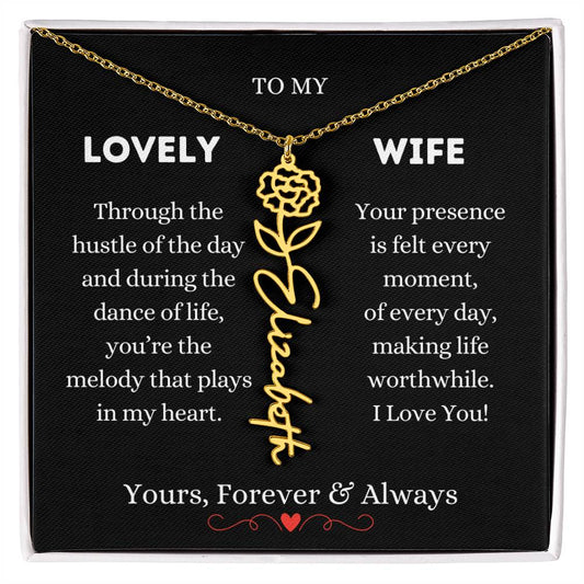 To My Lovely Wife | Gold Birth Flower Name Necklace