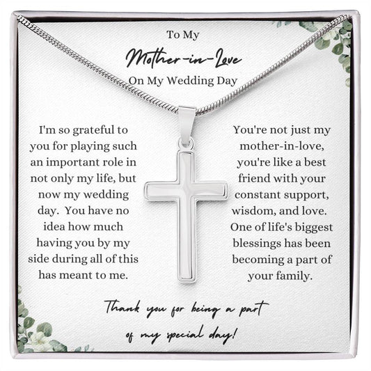 To My Mother-In-Love On My Wedding Day | Stainless Steel Cross Necklace