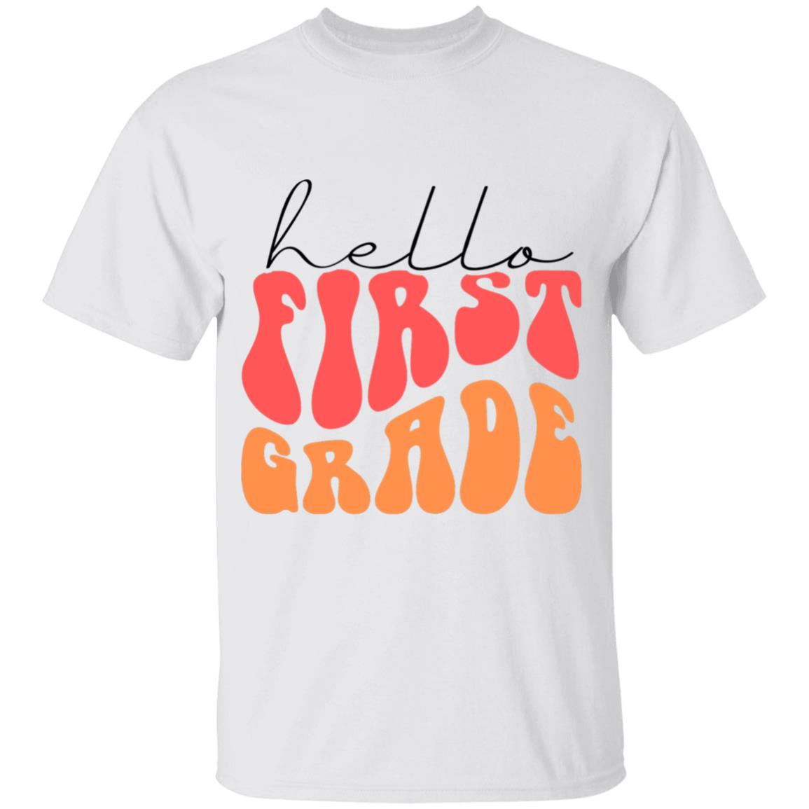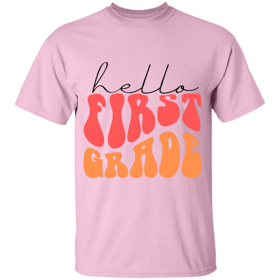 Hello First Grade Retro Pink | Youth and Adult T-Shirts