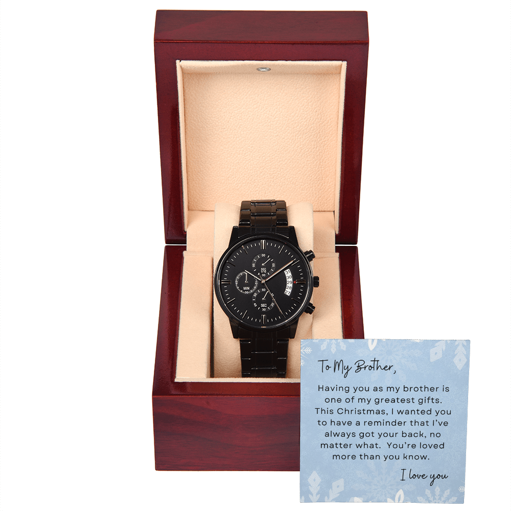 To My Brother, I Love You | Winter Snowflake | Black Chronograph Watch