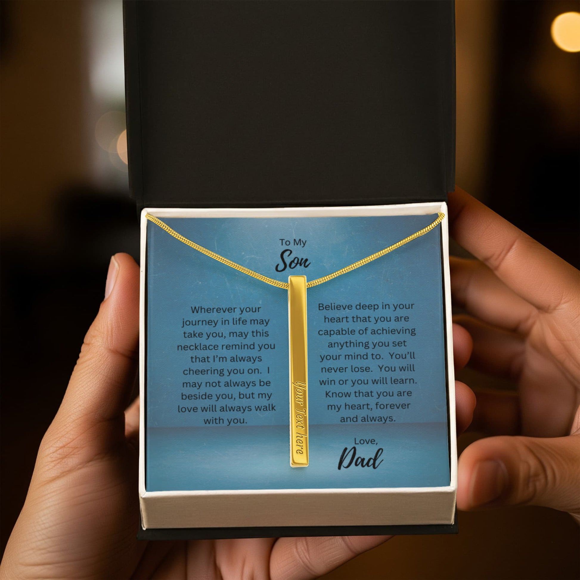 To My Son, Love Dad | Wherever Your Journey Takes You | Personalized Vertical Engraved Stick Necklace